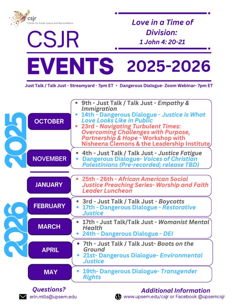 JustAct is the Center for Social Justice and Reconciliation’s ongoing conversation of justice, faith, and society. Resources are posted on the digital newsletter throughout the month. Sign up to receive our email newsletter to see the latest posts.