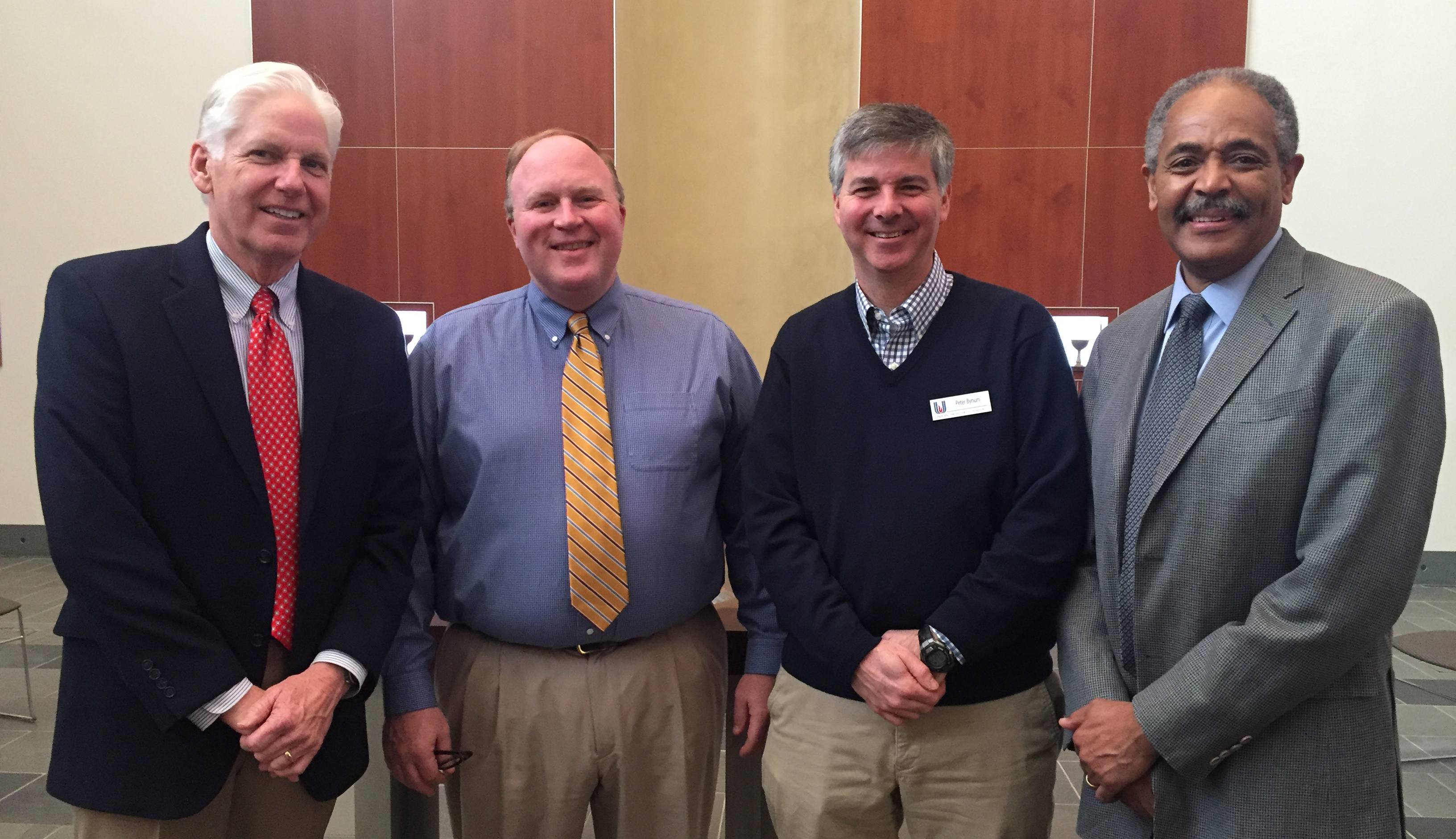 Ed Roberson, Christopher Edmonston, Peter Bynum, and President Brian K. Blount at the board of trustees meeting in January 2018.